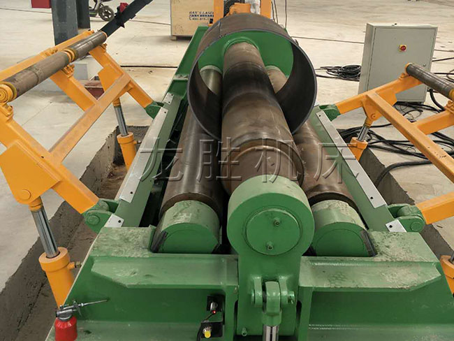 該機優(yōu)點是板材端部預(yù)彎及卷圓可以在同一臺設(shè)備上進(jìn)行。